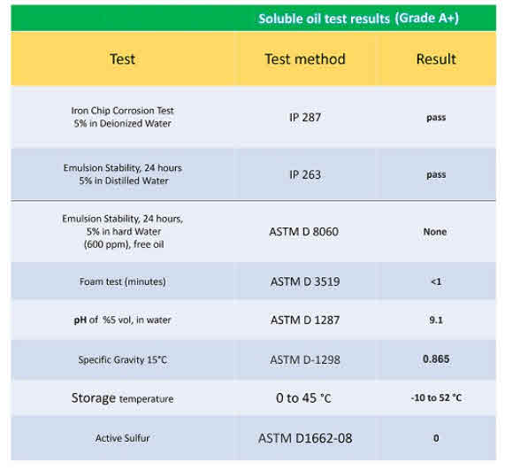 Spec.& analyses | : Soluble oil Garde A+/A